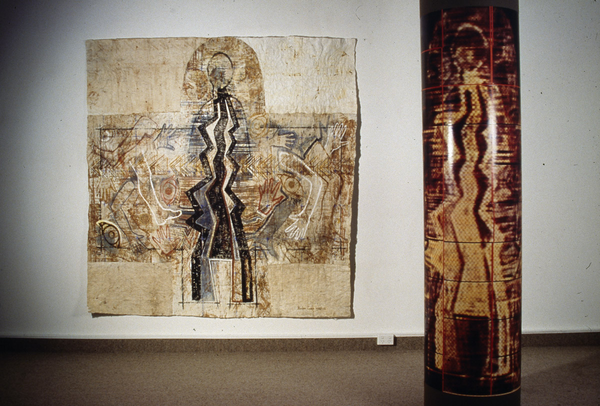 Description: Painting: Column, surfaced with computerised print of the painting 1986-88