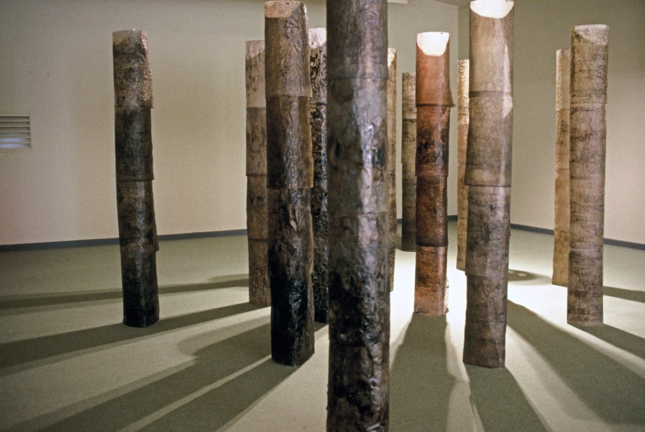 Description: Created for ANZART in Hobart, Lamella Lamina was formed using architectural tracing paper, processed with asphalt, water and oil based pigments,and hanging from nylon thread.